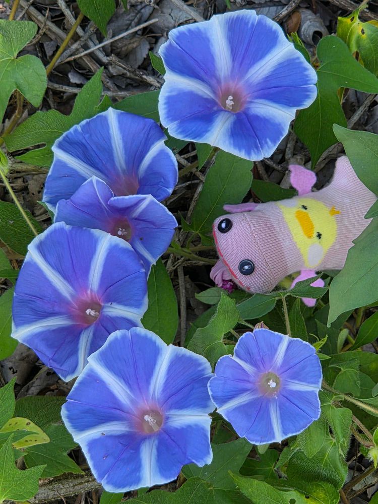 アサガオ…日々増えて咲いています(笑)💙🤍
