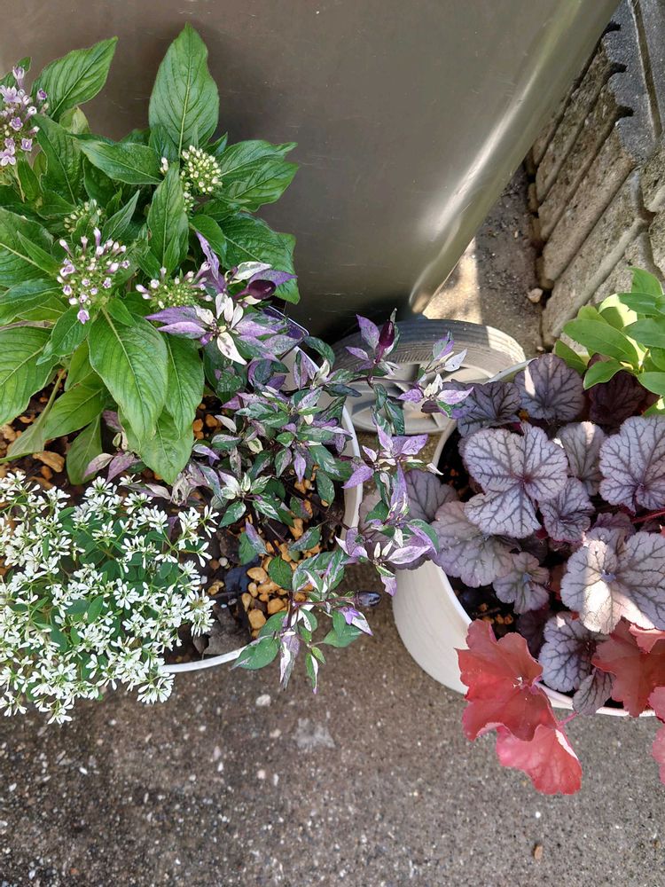 夏の暑さに負けない寄せ植え達。