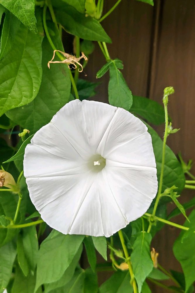 真っ白な朝鮮朝顔、早朝しか、みられないので、じっくり眺めたいと我が家で育ててるの。