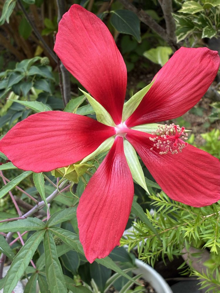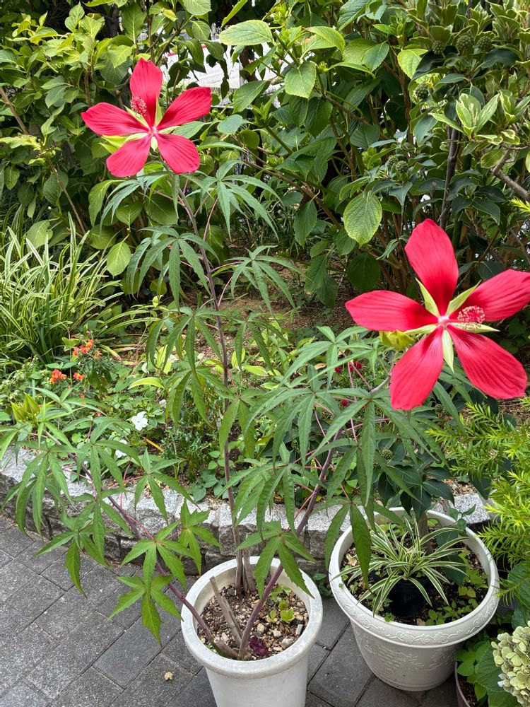 鮮やかなモミジアオイの赤♥️、印象的ですね🎶