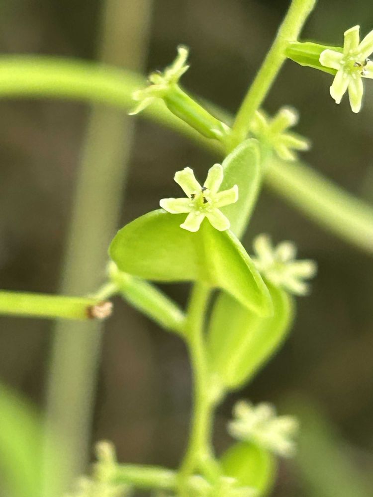 雌花の大きさは約5mmで、3裂した雌蕊と、周りに退化した雄蕊がある