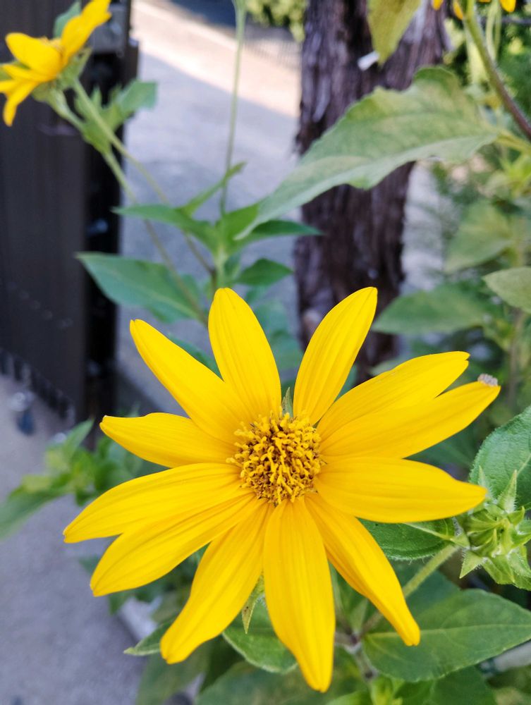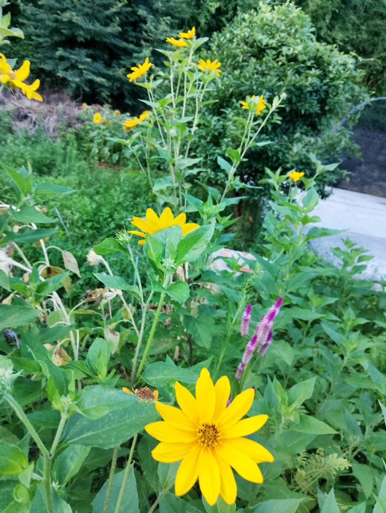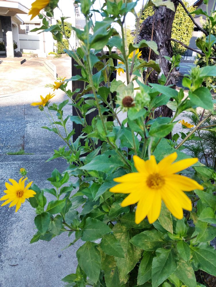 猛暑の中我が家で元気いっぱいに花をさかせているのが、菊芋の花です。