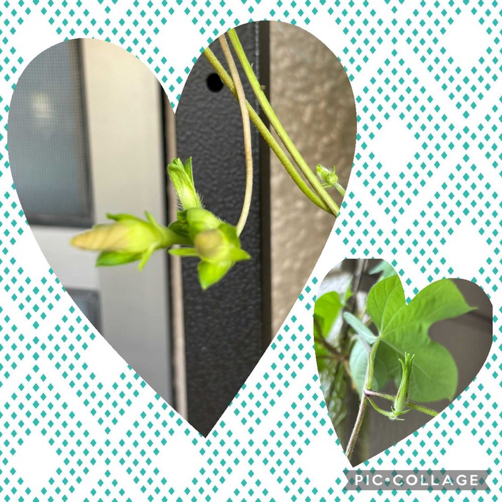 ↘️原坊の朝顔の蕾 上の方にやっと2つ膨らんできました