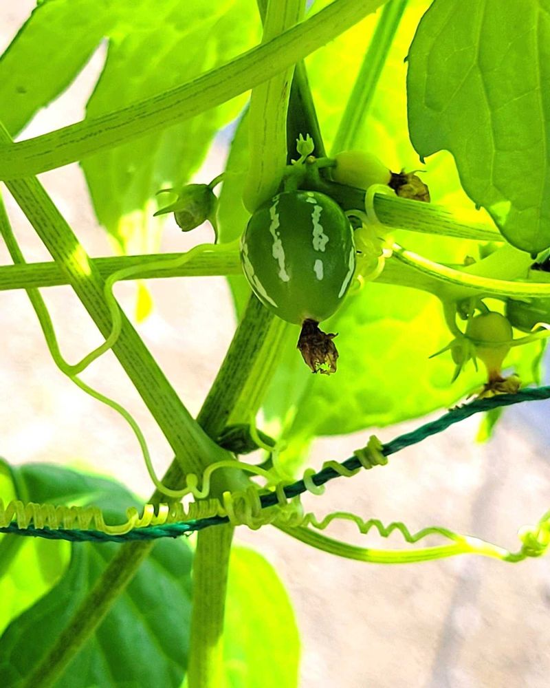 オキナワスズメウリは葉っぱの成長は良くてもなかなか雌花が咲かなくて、実がなって感動するのが遅いです😅