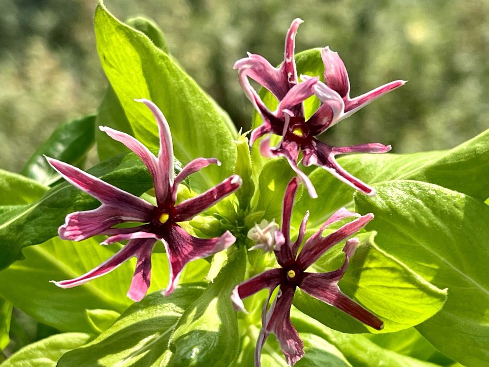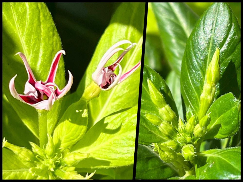 1️⃣ こぼれ種3号の、ライムグリーン葉の茜花火、花姿が安定してやっと本来の姿で咲いています♪