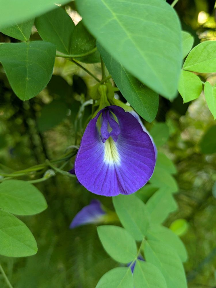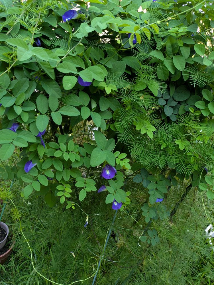 バタフライピー 一重はよく咲きます。ルコウソウと、絡み合っています。