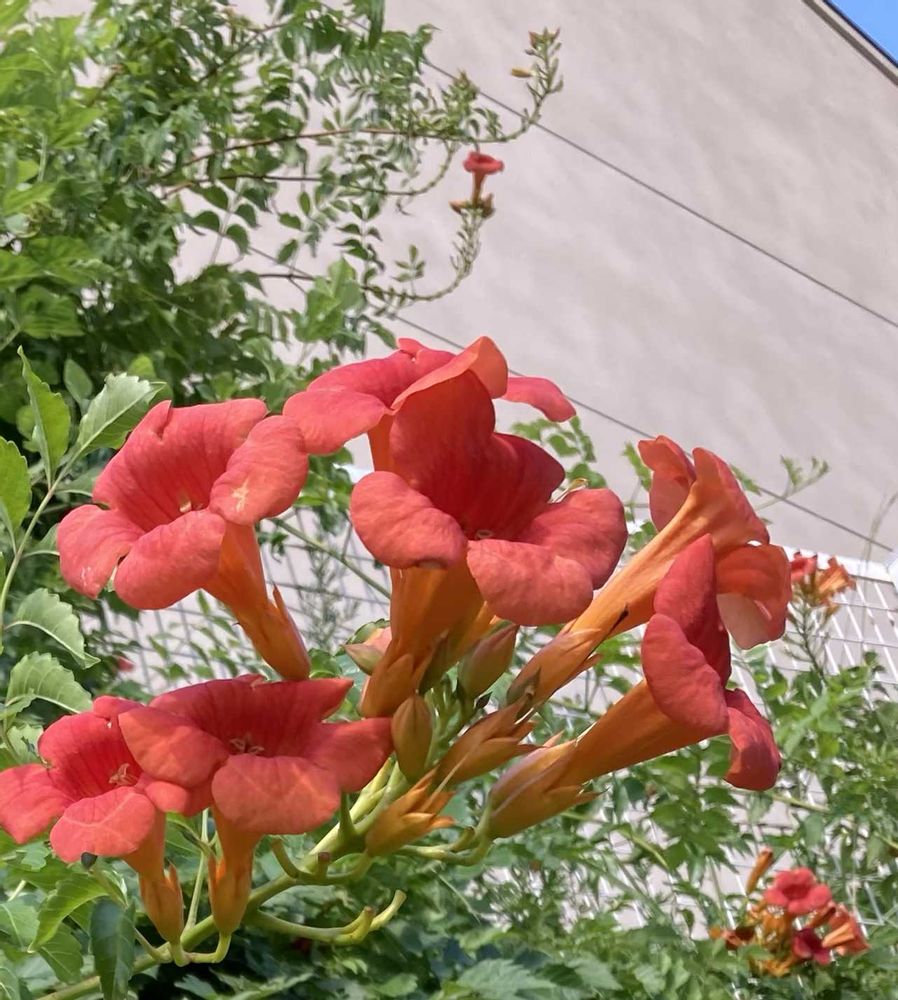 散歩道で見つけたノウゼンカズラです(*≧∀≦*)