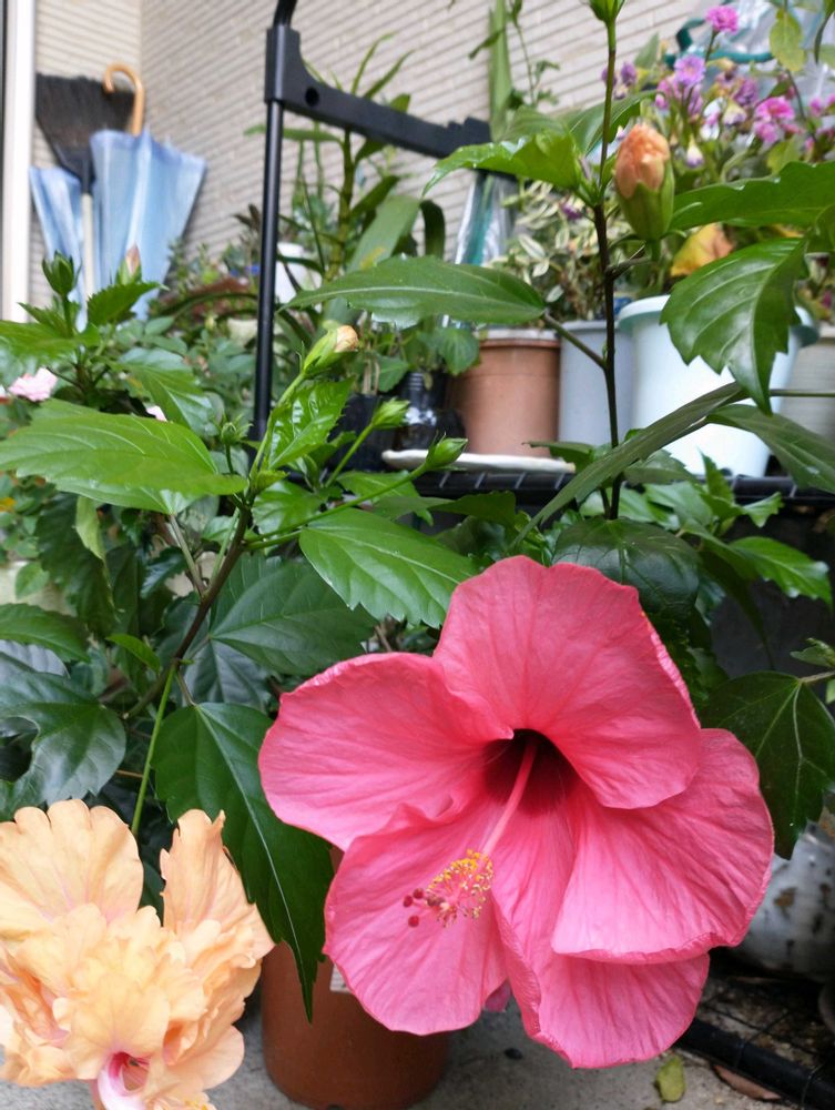 我が家の古株🧡オレンジハイビスカス 満面の笑顔のような〜①②