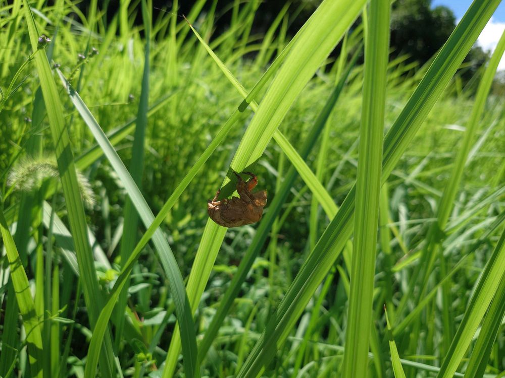 蝉は「ミーンミーン」より、「シャンシャンシャンシャンシャー」とけたたましく鳴くクマゼミが多くて、パタッと鳴き止むとシ~ン…