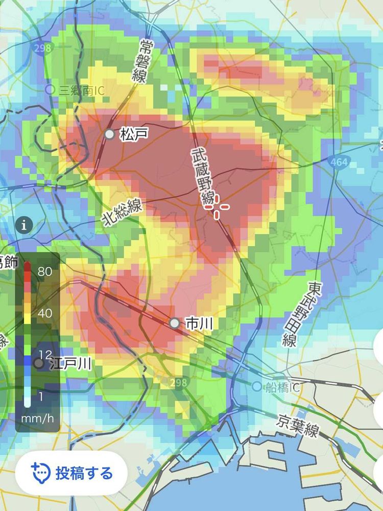 ③昨日の15時半ごろの雨雲レーダー