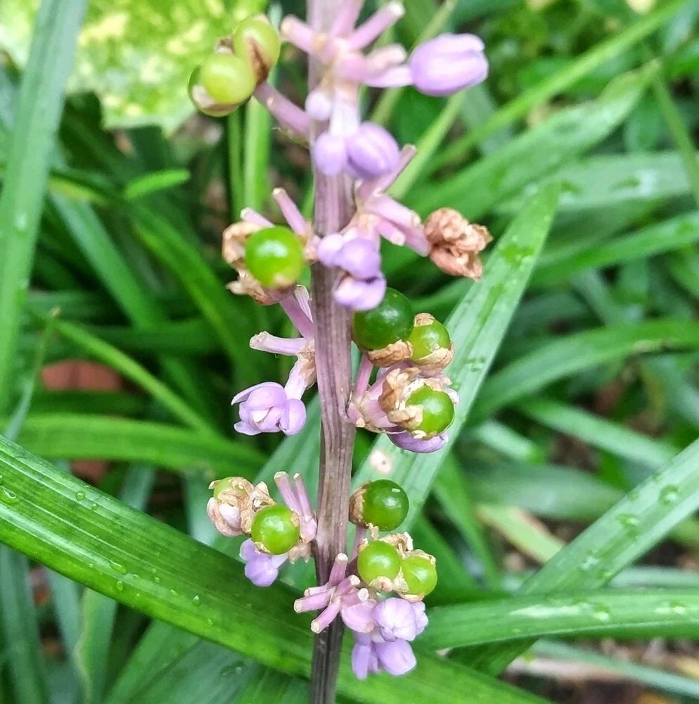 別の場所の薄紫色のヤブランには、もう実が出来ていました😅