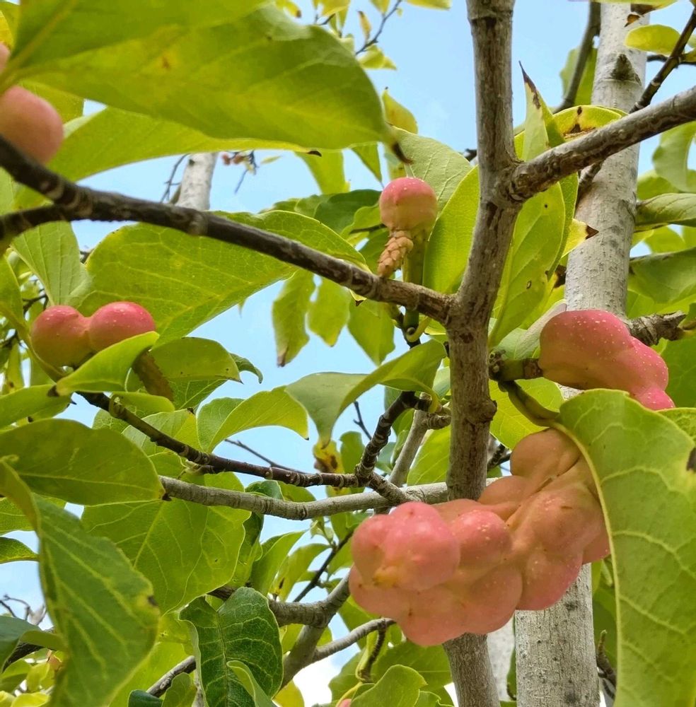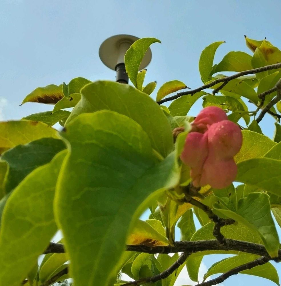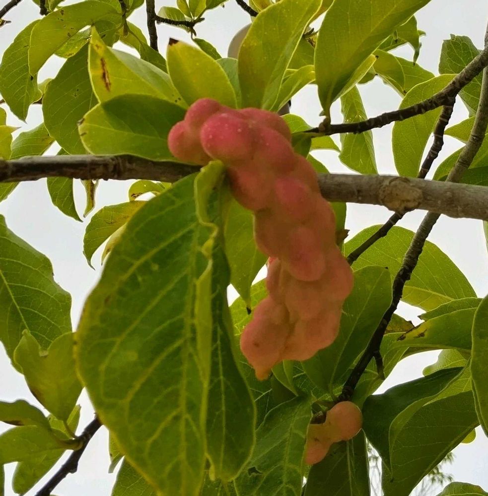 暑くて出歩かないうちに、コブシの木になっていた実が赤く色づきました‼️