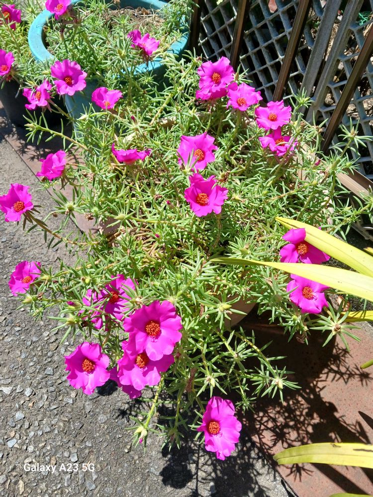御近所さんのマツバボタンが太陽浴びて気持ち良さげに咲いていました🎵