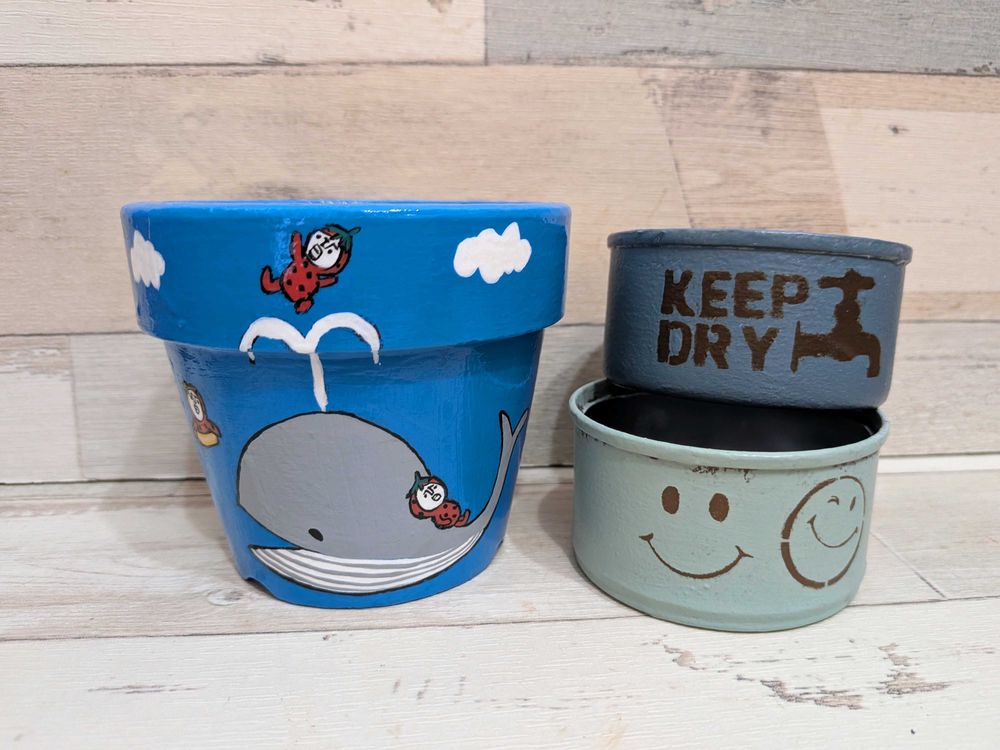 えつこさんのリメ鉢🐳&小さなリメ缶