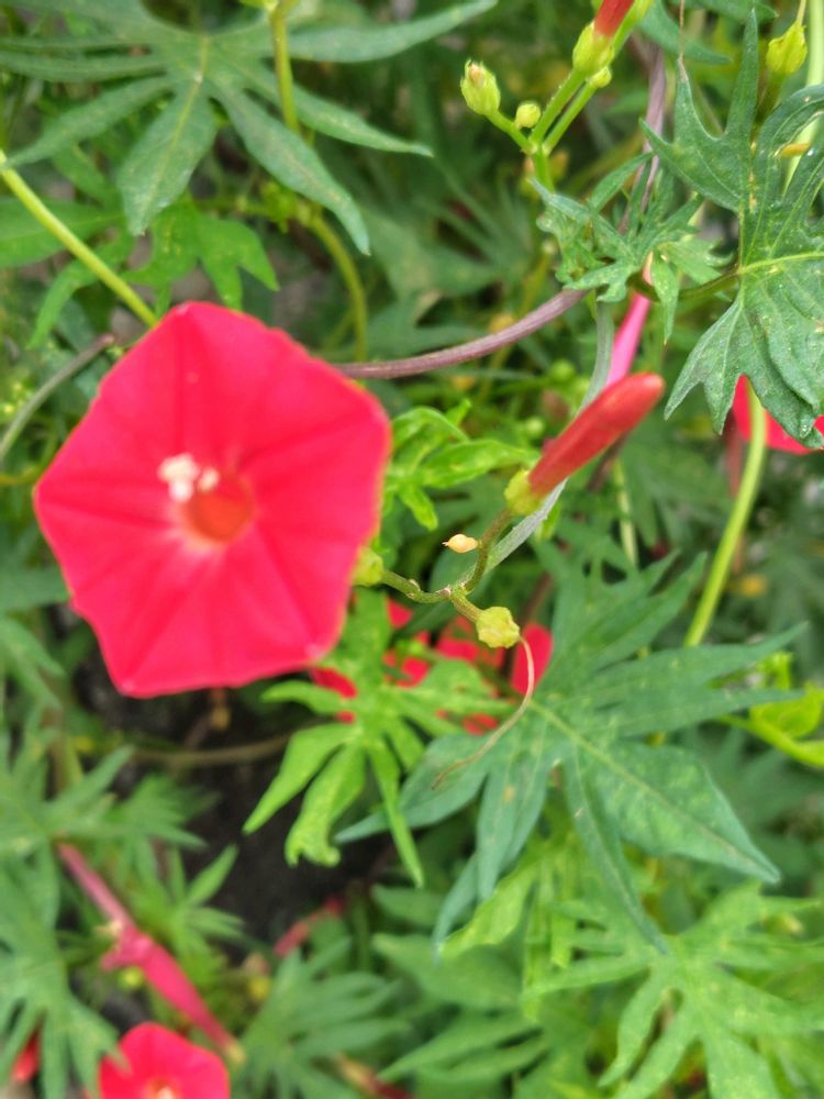 花は紅色で、アサガオを小型にしたような形状をしていて、花径は2.5cmほどである。