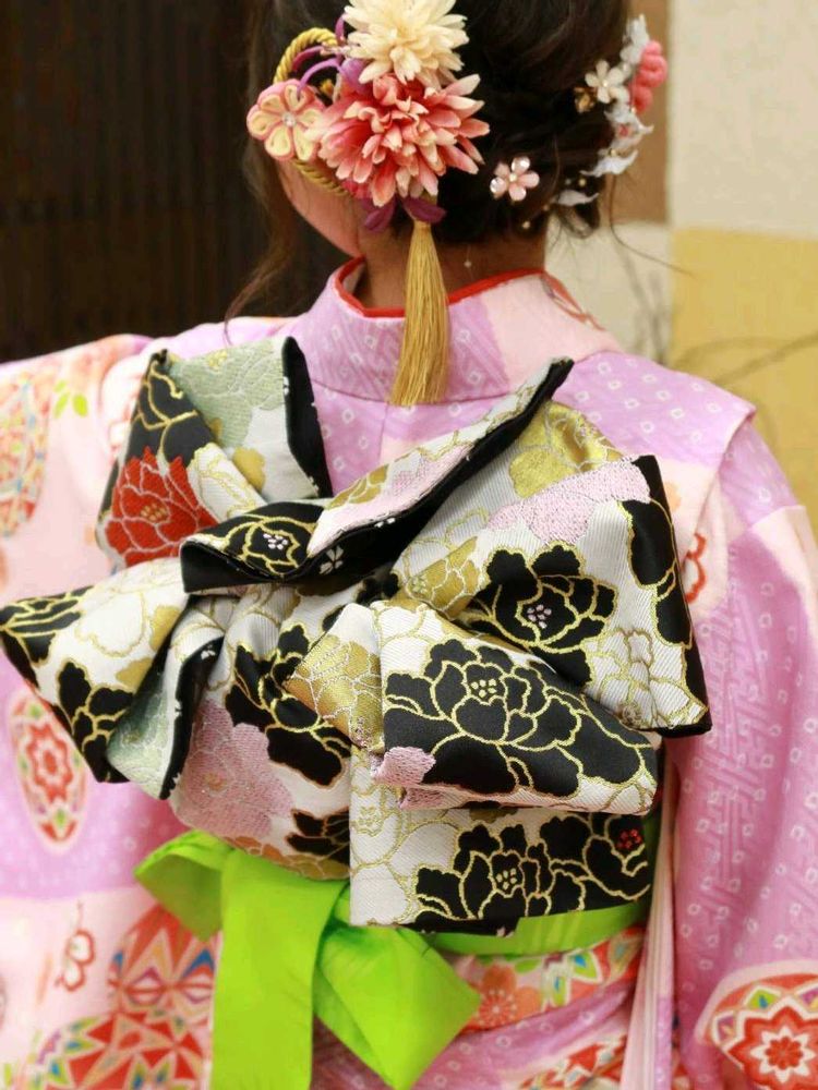 最初ピンクの着物だけ見たら幼い感じがしたけど黒い帯が大人っぽくてなるほど〜でした😄