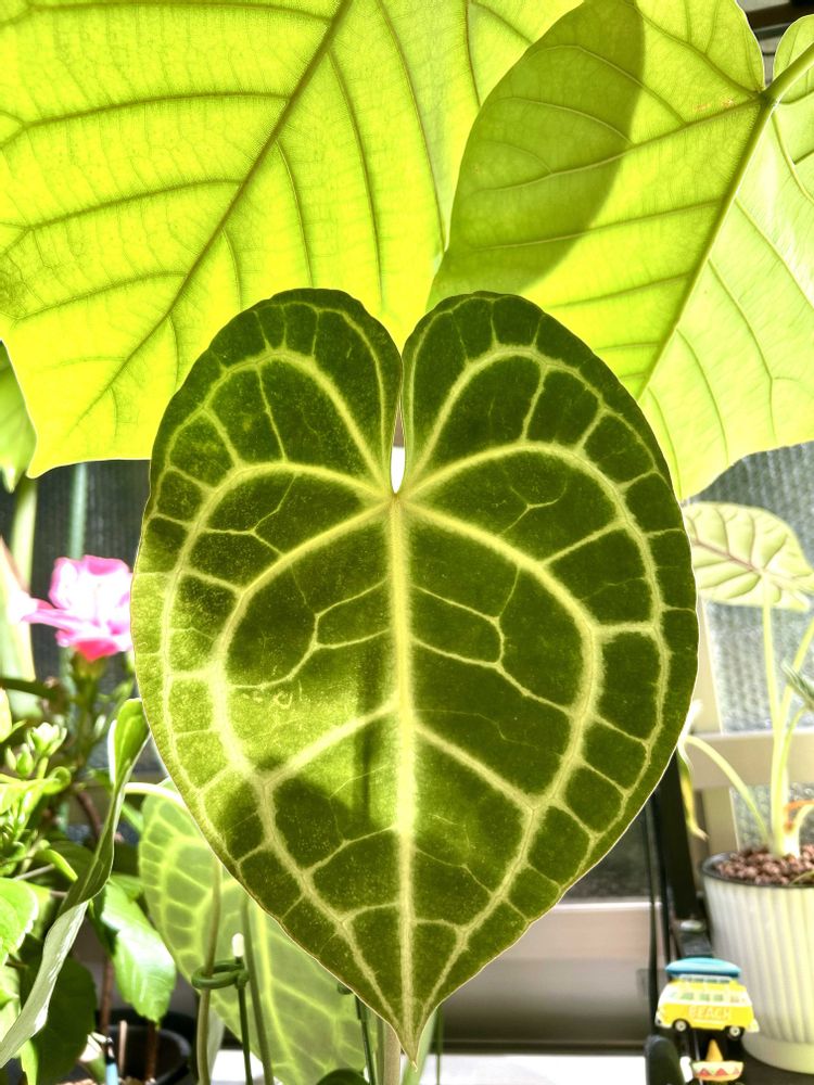 2025.8月に某サイトで購入した【アロカシア チャイ】の 突然変異?なんだろう 購入時、元々有った葉を(1枚目の葉)として、 下から新たな葉が出てきてる状態で到着しました(2枚目の葉) こちらに来て初めて出てきた葉に異変が。。 育て始めて出てきた初めての3枚目、4枚目 (途中から、斑1、斑2、、と続きます) どこまでこの謎の斑入葉が続くのか、 いや止まるのか……記録していきます