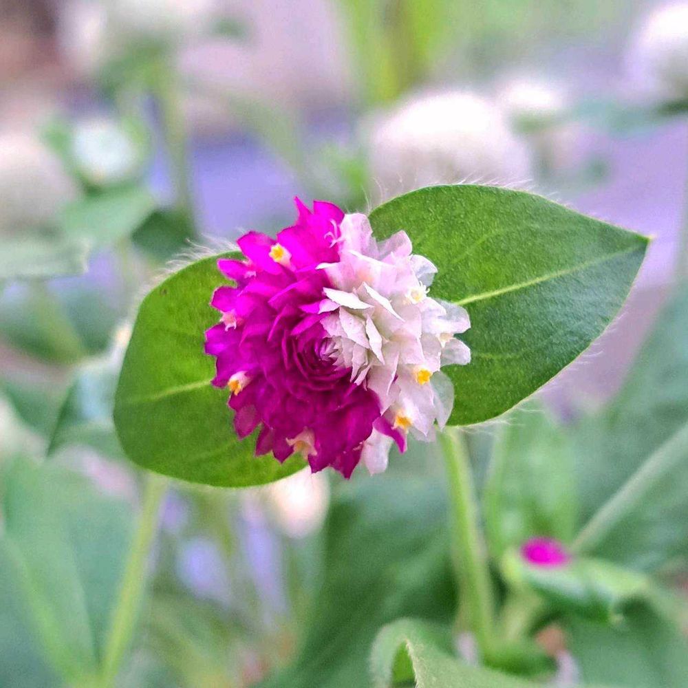 センニチコウさんの白とローズに周りにイエローの小さなお花が見えて可愛らしい彩りですね~🩷🤍💛꒰ ૢ❛ั◡❛ั ॢ✩꒱♥.。.:*♡
