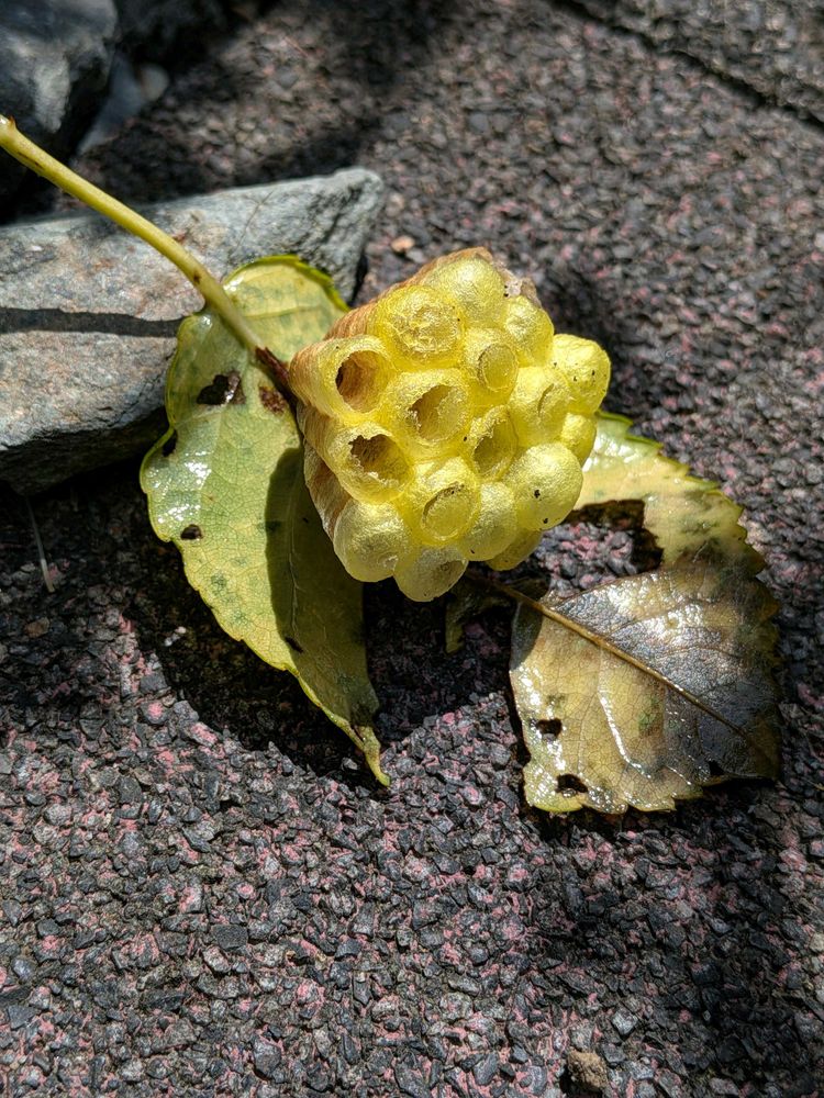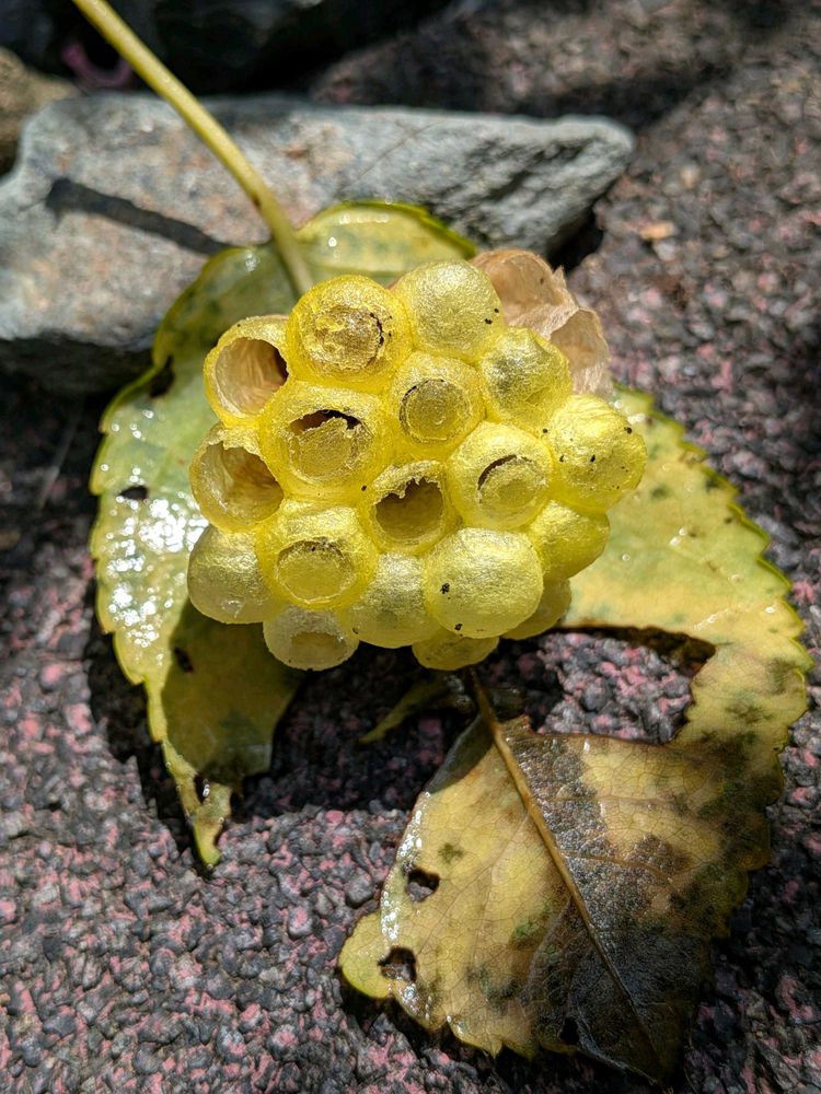 きれいな黄色の巣…キボシアシナガバチらしい。