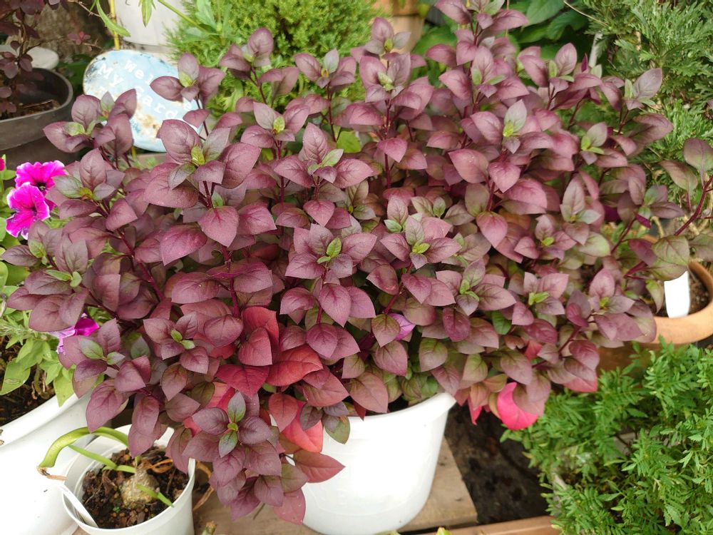 真夏の暑すぎて花かつきにくいこの時期、アルテラナンテラの美しい葉色に惹かれてここ数年、毎年育てています。