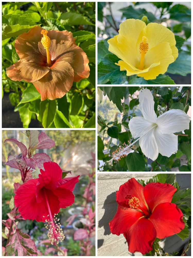 色とりどりのハイビスカス🌺さん競って美しく咲きましたね‼️