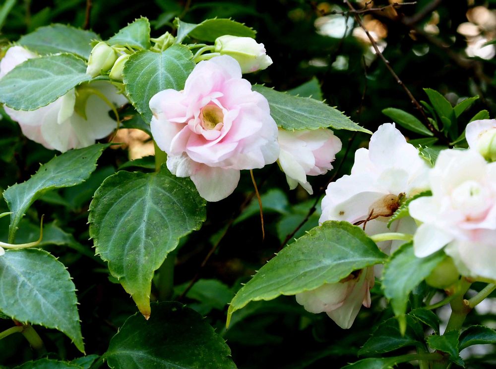 切り戻していたバラ咲きインパチェンスが咲き始めました
