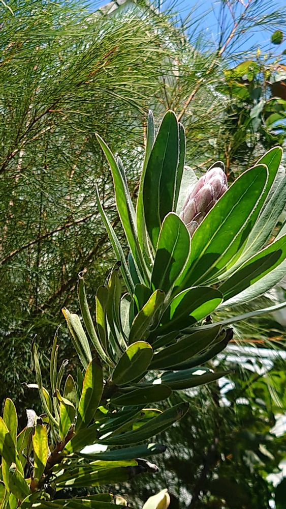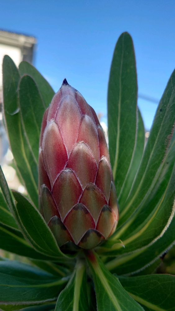 家の前の道を歩いてて、我が家を見上げたらプロテアに大きな蕾がついてるのを見つけたよ〜(他に小さな蕾も3個)思わず嬉しくなりました〜🥰🩷💕🎶