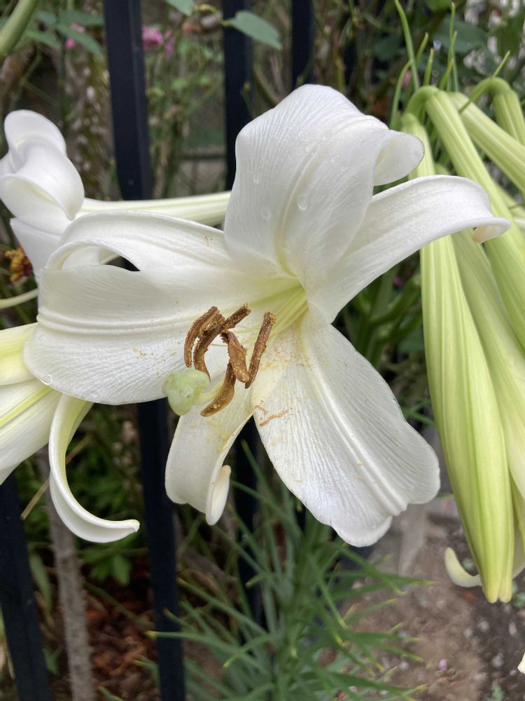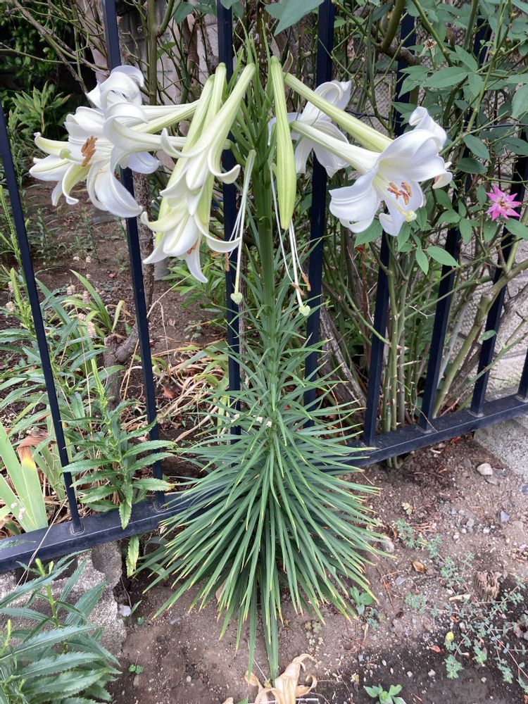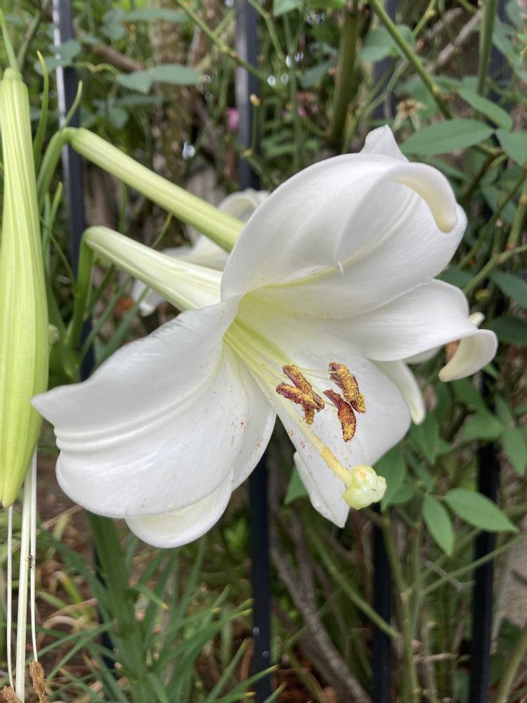 花の裏の色のついた線がないからシンテッポウユリですね。