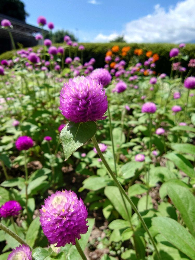 青空にセンニチコウのお花も元気に咲いていますね💕︎