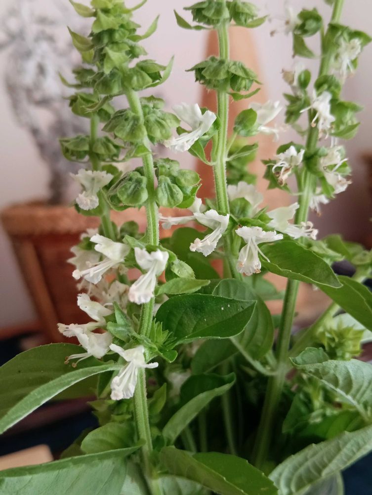 🤍夏野菜のコンパニオンプランツのバジルが、開花し始めていました。