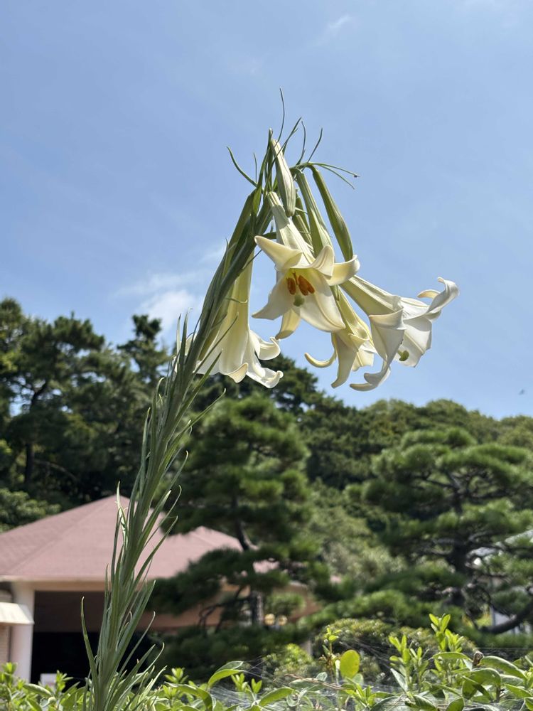 ① 蒲郡で見かけた「タカサゴユリ」🤍青空に映えますね。