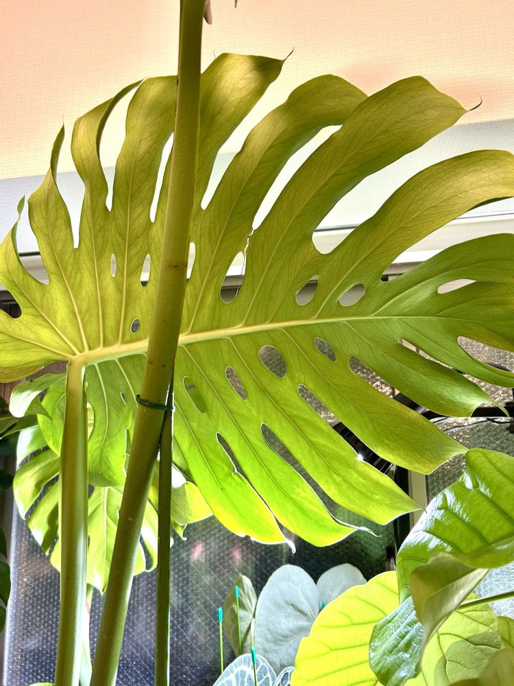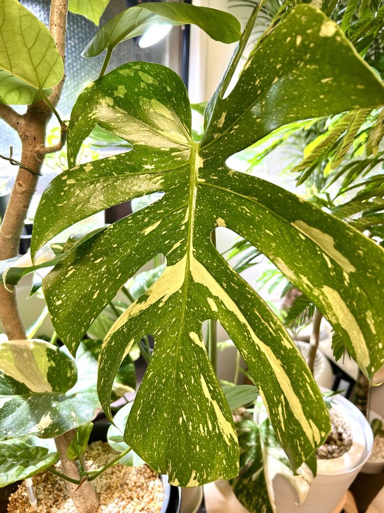 斑入りのモンステラは、どの品種も通常のモンステラよりも葉焼けしやすく、また**暗すぎると斑が消える(先祖返り)**ことがあるため、管理には特に注意が必要です。