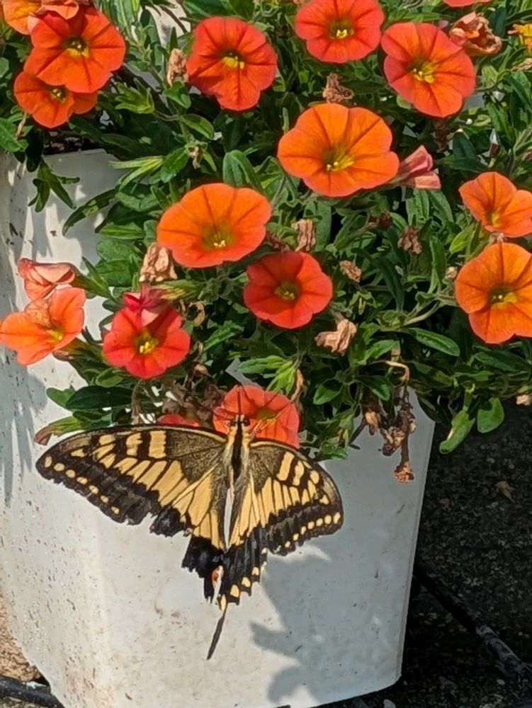 1️⃣カリブラコアのお花に朝イチアゲハ蝶🦋のお客様がいらっしゃいました💕