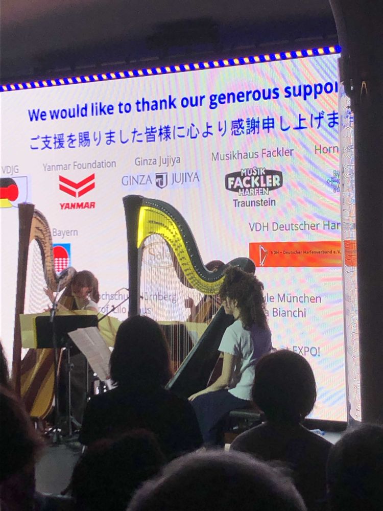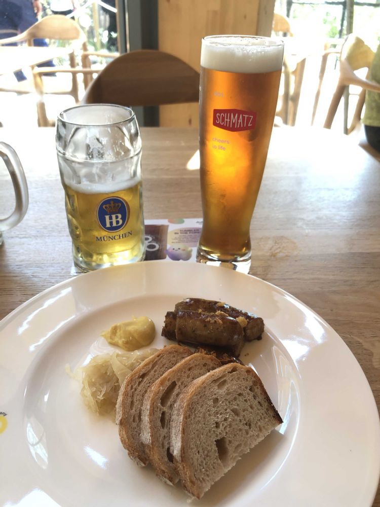 ドイツ🇩🇪館のレストランにて、ビール🍺とパンとソーセージ🌭を頂き、夜はハープ演奏🪯を聴きました。🌃🌞✌️