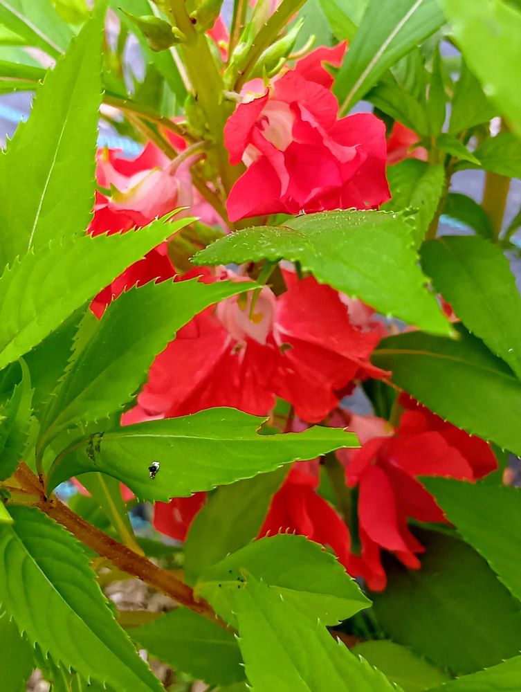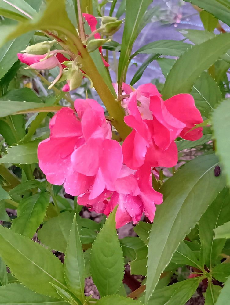 ピンクと赤のホウセンカ毎年こぼれ種で咲いてくれます ҉٩(*´︶`*)۶҉