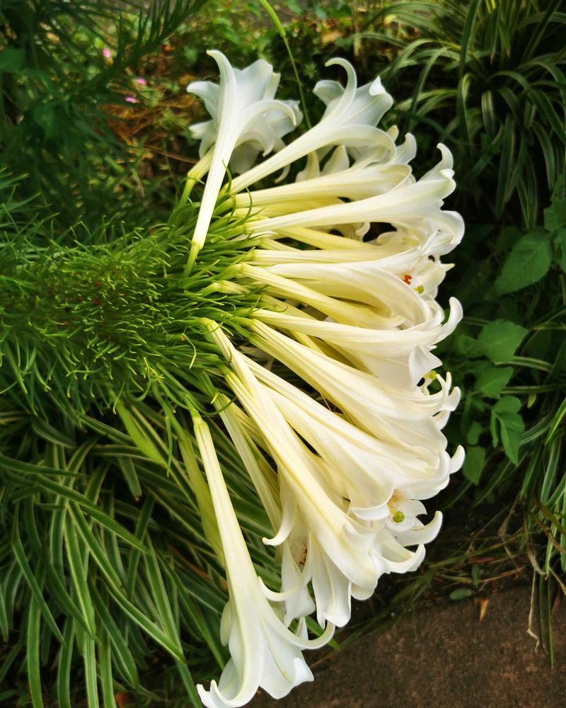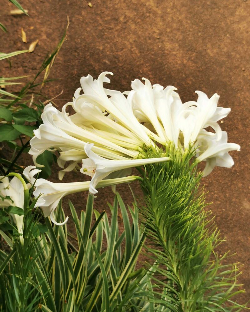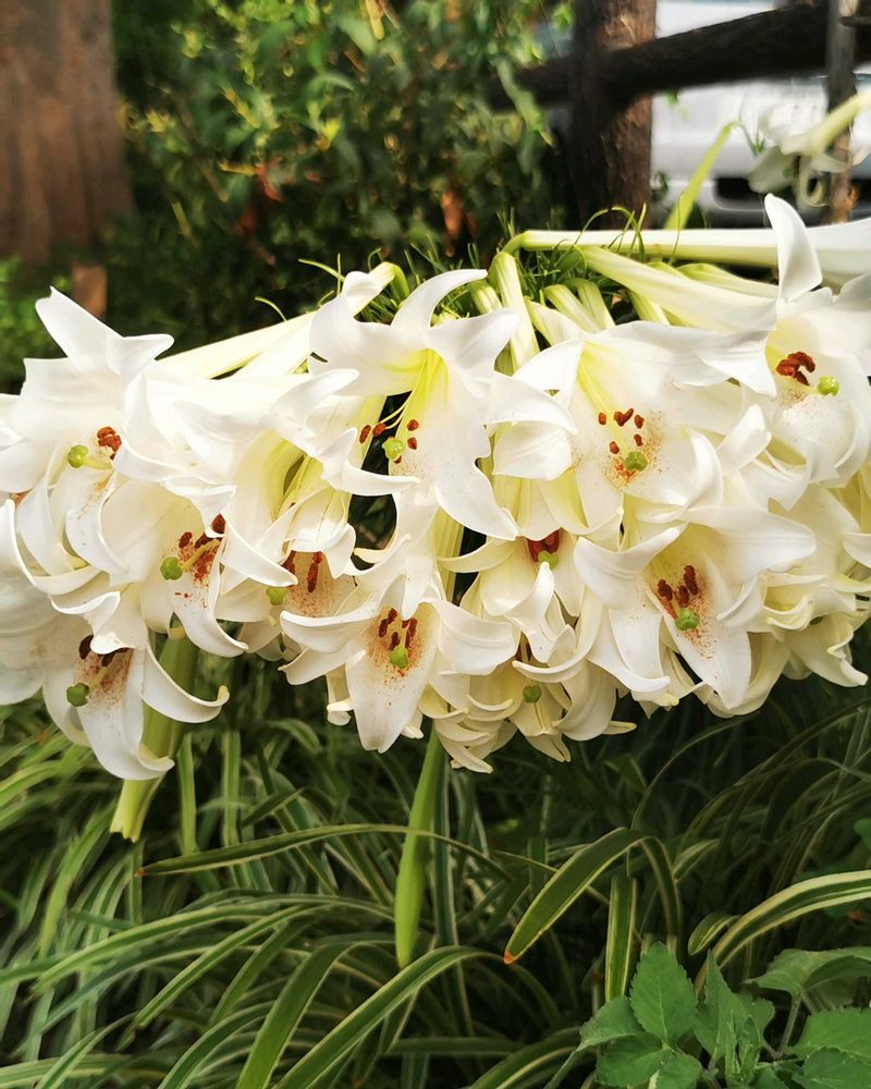 この百合の花は、1 本の枝から、先端に集中して、花束みたいに咲いていました。本当に豪華な花束です。💐