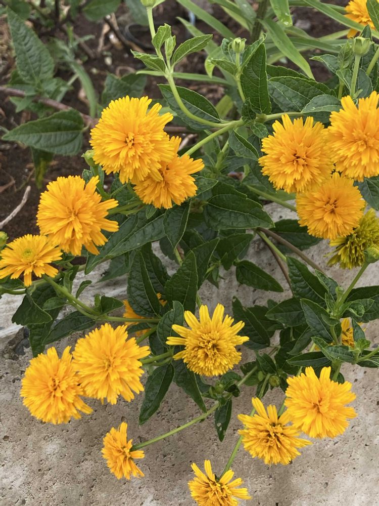 3枚目 八重のヒメヒマワリ(キクイモモドキ)に似てますがどうなんでしょうね🤔