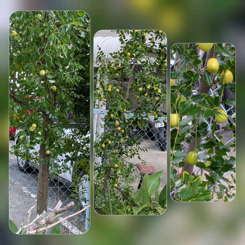 駐車場横花壇のナツメの木の実と庭のムクゲの花です。