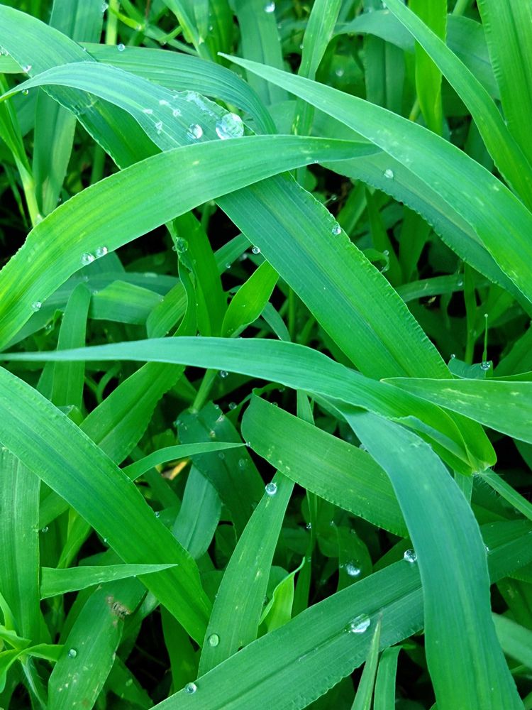 お目々に優しい色の草🌿と朝露をお届け📸