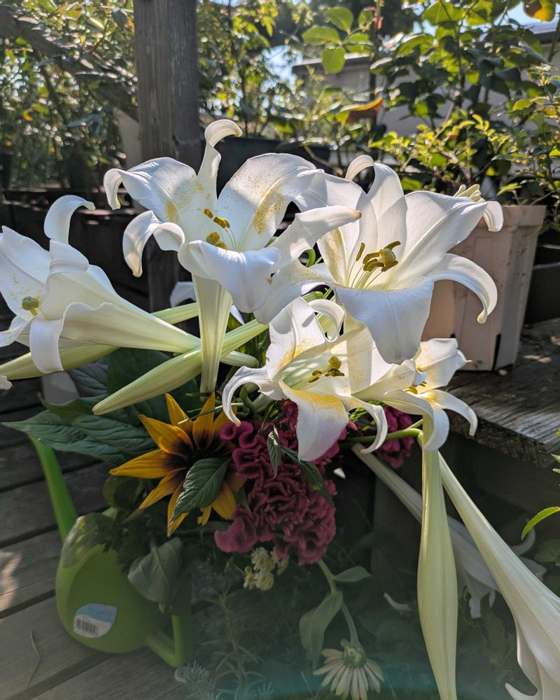 チロルンまみーさんのブルーフォー・ユー,ピンクのお花達。,今月のお墓参りフラワーの投稿画像