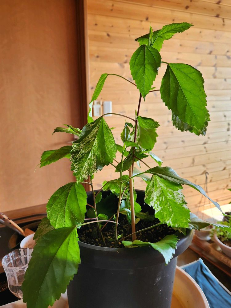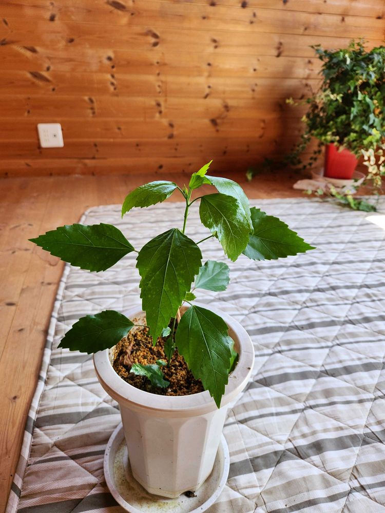 2️⃣数日経ったハイビスカスの押し木3本仕立て