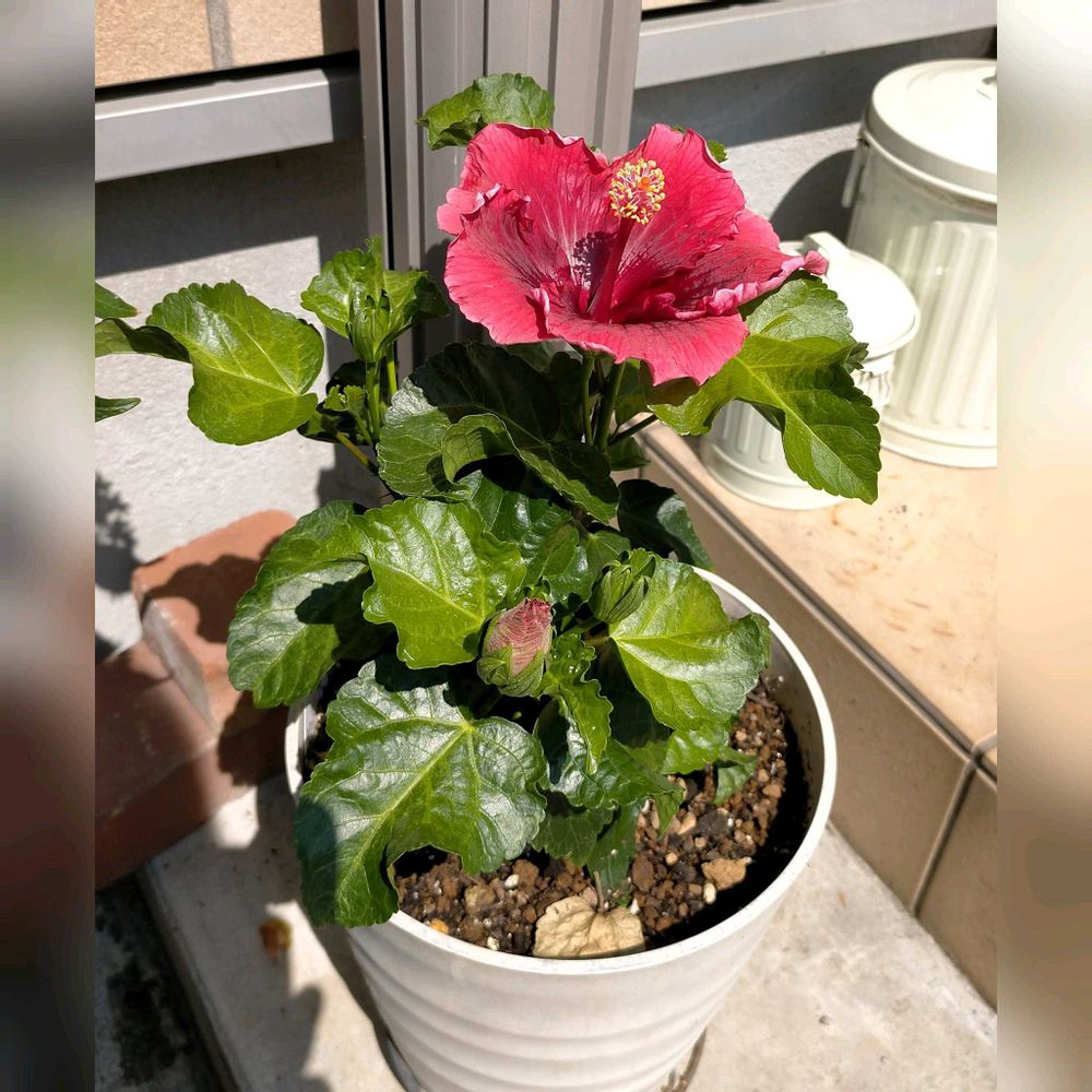 大きくなる、冬は室内で育てるとなるので、手を出さないようにしてました。ご近所さんのハイビスカス、とても綺麗だったので、気になり、普通のハイビスカス、お安くなったのを2つ購入。