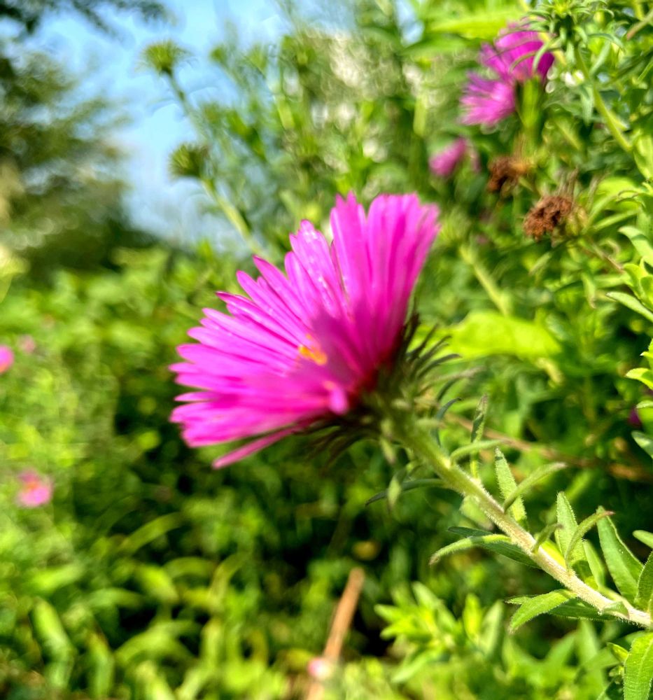 鉢植えなので一本茎が伸びて花が咲いてるよ🌸