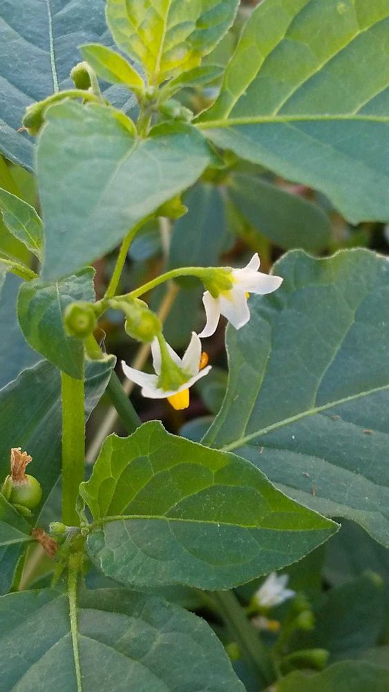 イヌホオズキかと思われますが アメリカイヌホオズキかも知れません ナス科ナス属で ナスやホオズキに似ているが ソラニンという毒性物質が含まれ 役に立たないことから名付けられたそうです この属の特徴で 反り返ったとても小さな花が下向きに咲いているので 撮影に苦労しましたが 黄色の葯を覗かせていて意外と可愛らしいです