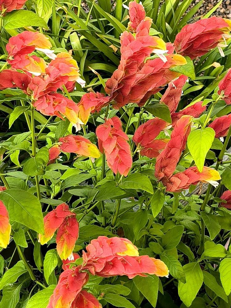鮮やかな朱色の苞が重なり合っている姿がユニークでエビのように見える所からコエビソウの名が付きました🦐