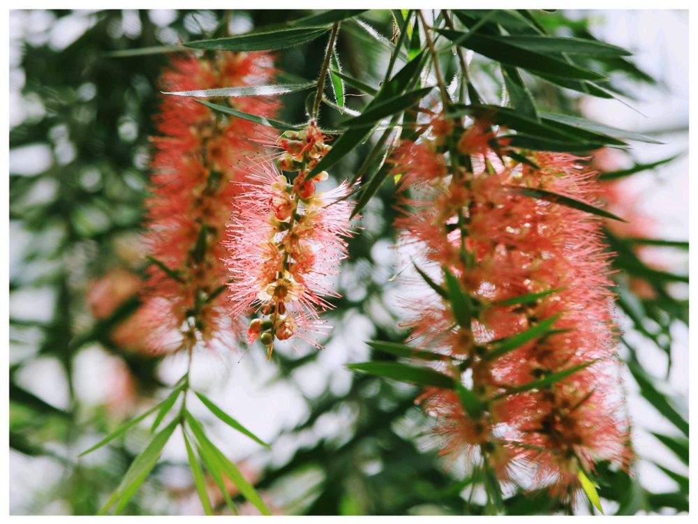垂れ咲きのブラシの木の花はブラシそのものの質感でしたよ(,,>᎑<,,)サワッテナイケド🎶