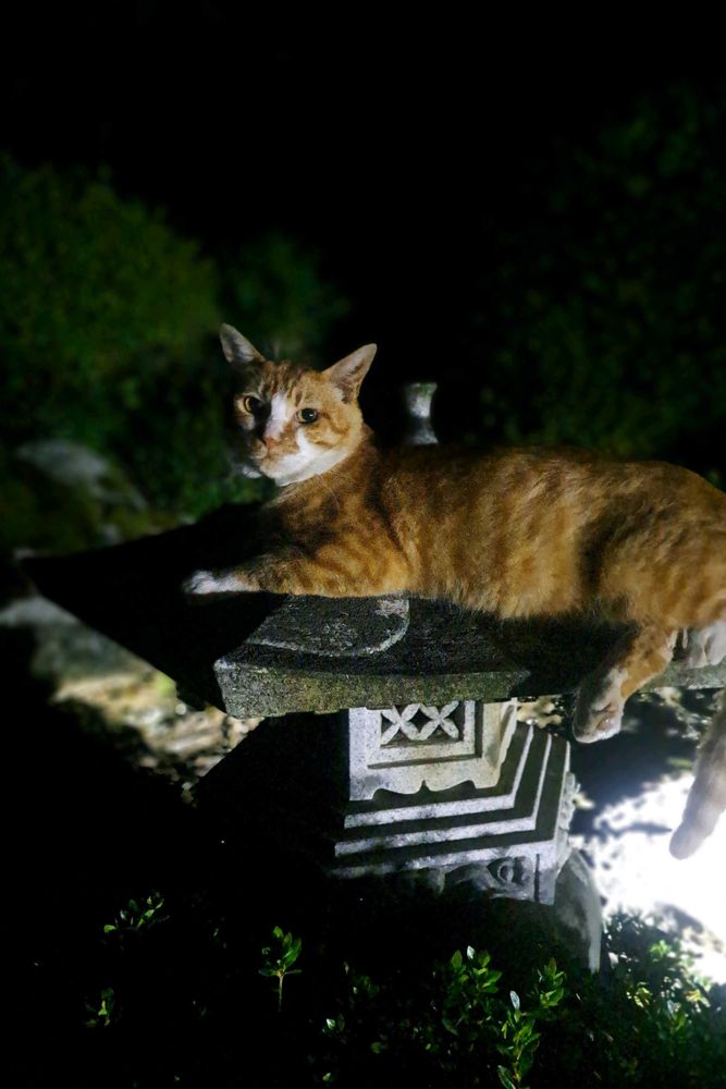 今日仕事から帰ってきたら灯籠でお出迎えしてくれてた2枚目ちゃー🐈