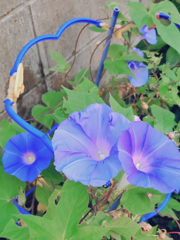 アサガオがいつもより青く咲きました。きれいな色形✨