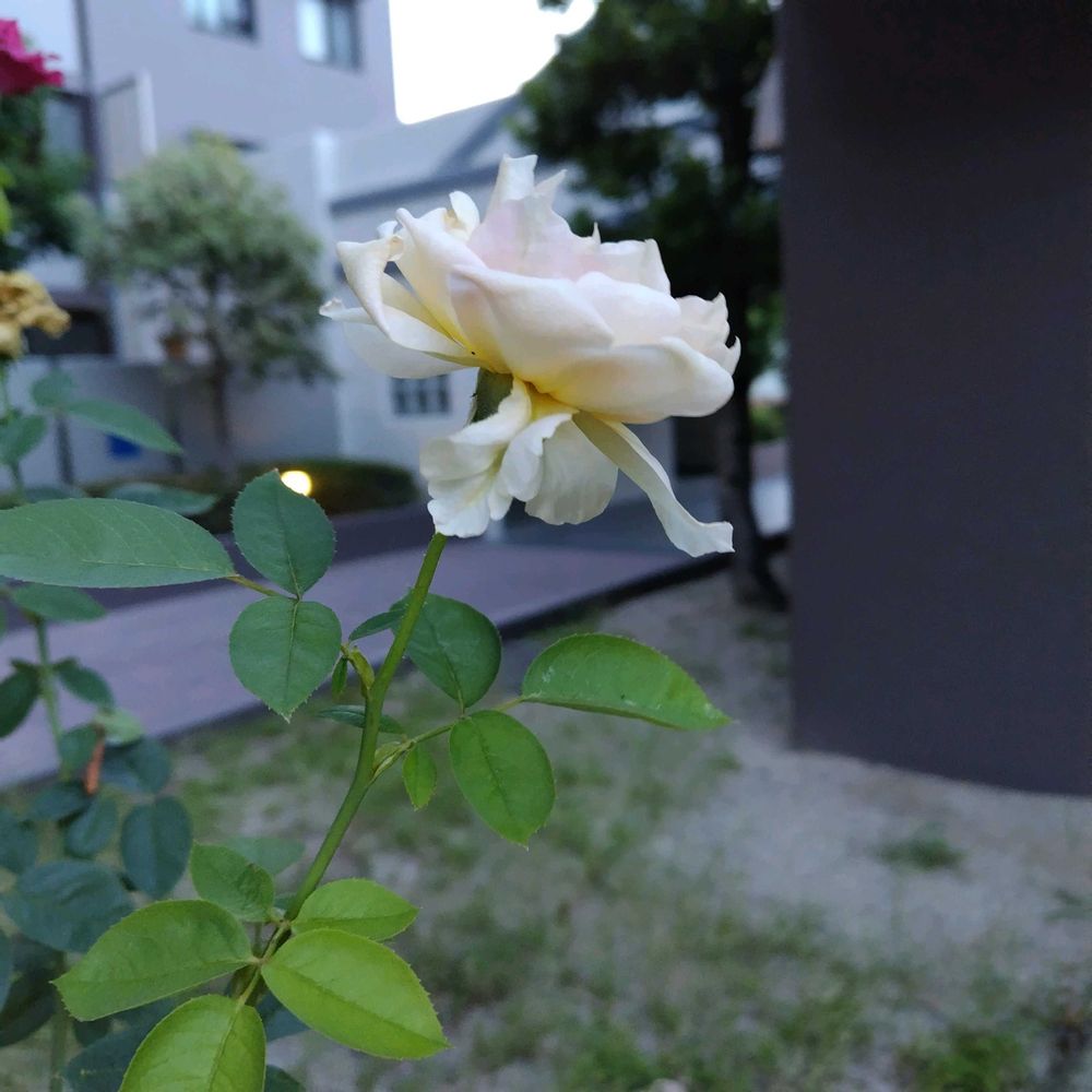 マンションの一階の花壇に、素敵なバラのお花、美しいわねぇ〜✨✨