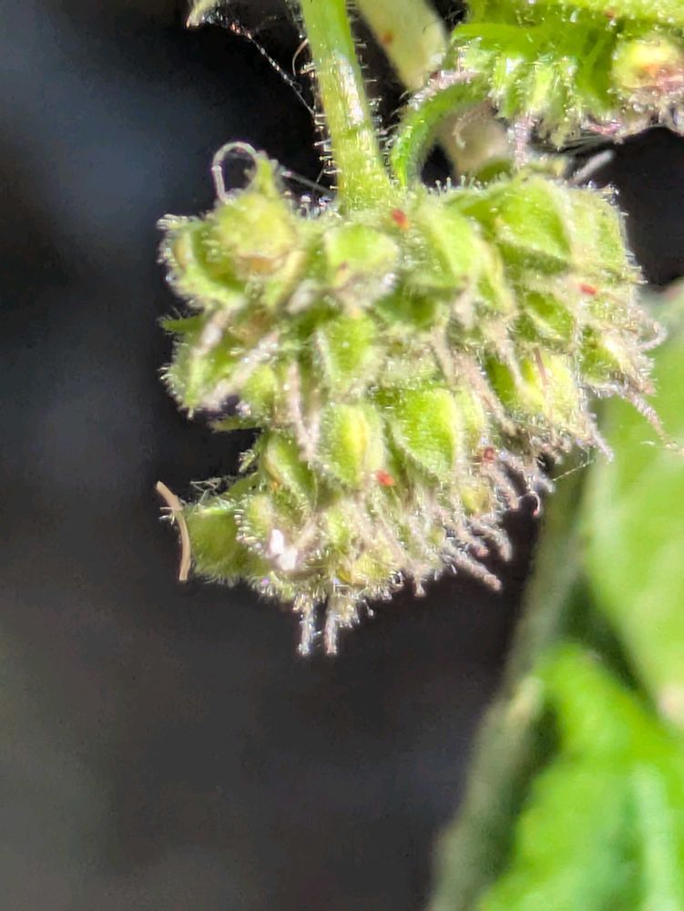 茎、葉には白毛と腺毛(センモウ)が密生。